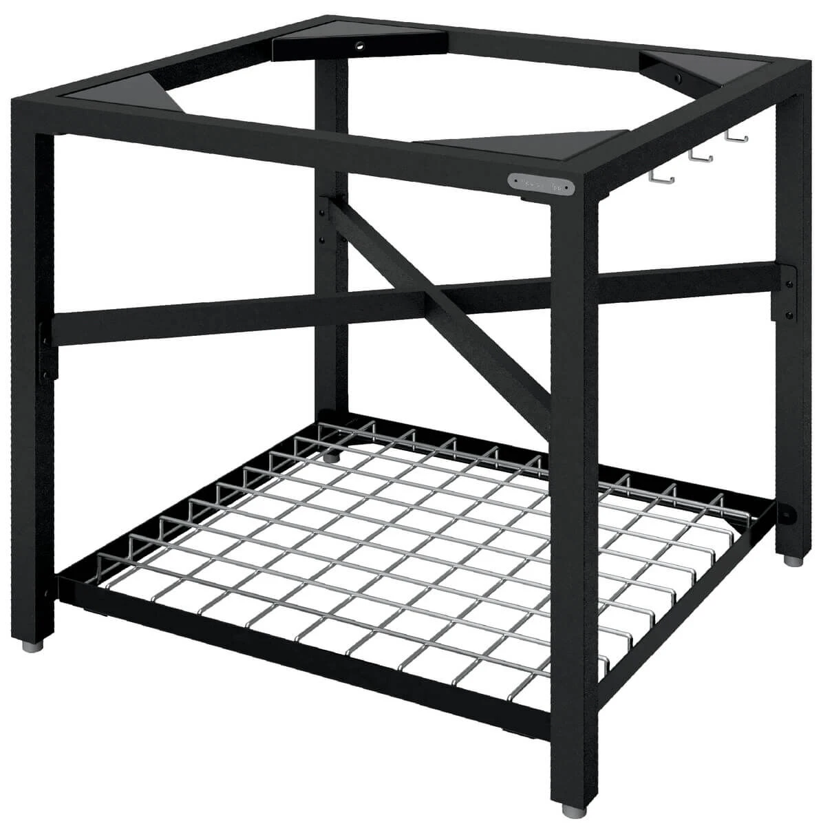 Het Egg Frame wordt geleverd inclusief een roestvrijstalen Grid Insert die geplaatst kan worden als onderste plank, haakjes om uw barbecuegerei op te hangen en 4 voetjes waar u aan kunt draaien om het Frame stabiel op een ondergrond te kunnen plaatsen. Eventueel is het mogelijk om apart wieltjes bij te kopen die onder het Egg Frame geplaatst kunnen worden, hierdoor wordt uw werkhoogte 10 cm hoger.